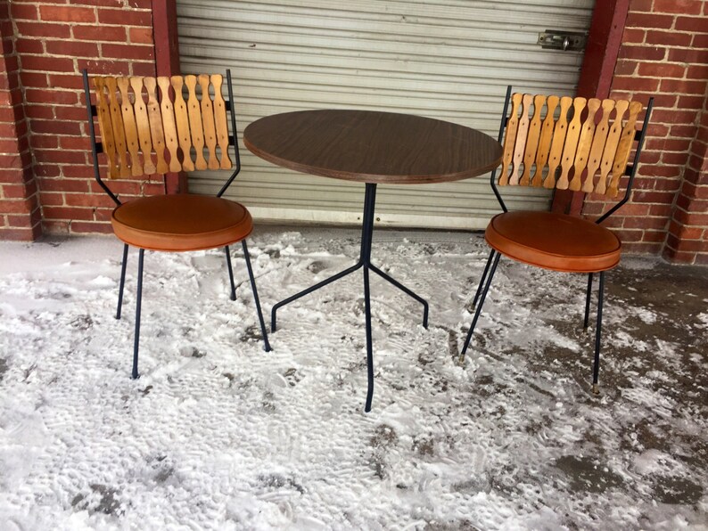 Favorite this post mar 1. Bistro, mid century, mid century chair, mid century garden, mid century modern, tice compact bistro set description reviews (0) Table measures 30 high x 29.5 wide. French, early to mid 20th. Two wrought iron chairs with original daisy pattern seats.