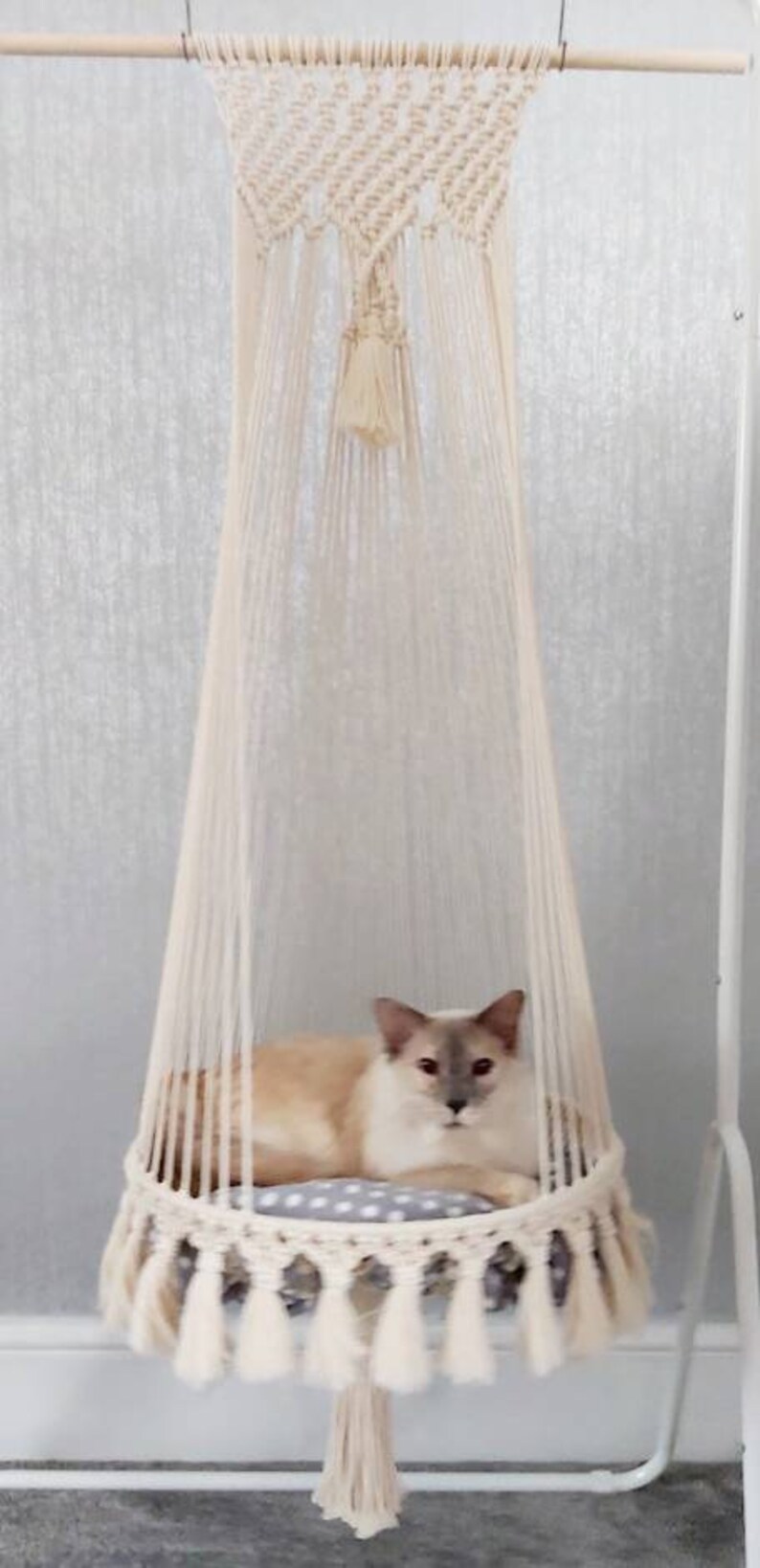 This listing is for just the hammock and everything need to mount it to the wall, which is perfect if you have a piece of furniture your cat can step from. Macrame cat hammock hanging cat bed pet wall furniture boho cat swing cute crochet cat supplies large cat bed cat lover gifts pets gifts macramebeautiful. A stylish new take on cat furniture, this hammock attaches directly to the wall. Provides a vertical space for your cat to perch, nap, and watch the action. More importantly, cat wall climbing shelves allow your cats to explore and lounge up high, which cats love.