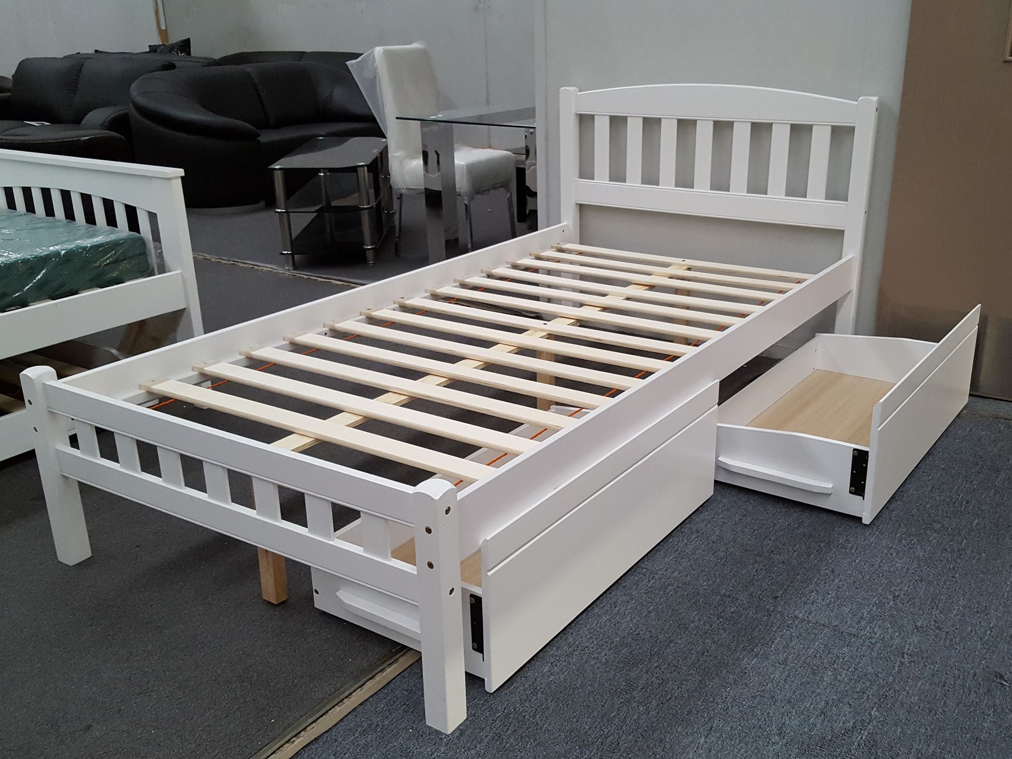 Add to compare compare now. While you're browsing our trendy selection of white storage beds, use our filter options to discover all the storage beds colors, sizes, materials, styles, and more we have to offer. Choose between single or double beds, in light or dark colors, with or without headboards, and in modern, sleek designs or classic, elegant styles. What are the shipping options for. Install drawers into bed as shown in diagram, using the white euro style drawer slides that cup the bottom corners of the drawers.