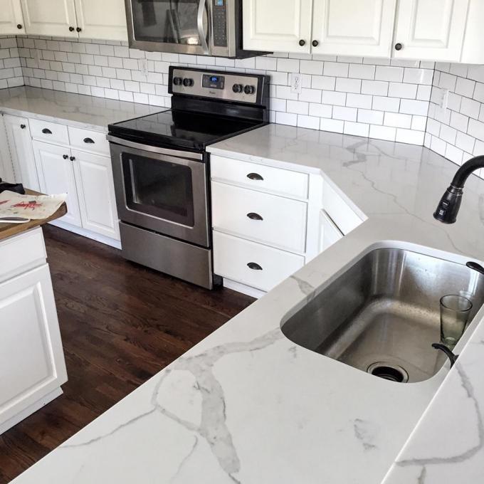 Another reason we went with quartz is because at the time i wanted white countertops with very minimal veins and no crystals or speckles at all. 3000x1400 (120x 55) max size: The variety of patterns can include tiny flecks on a solid background, a mostly solid coloring, larger lines and flecks against a solid background, and slight variations on all of these. Arctic white quartz is a solid bright white product with no veins or pattern. The second biggest mistake people make when they choose countertops is not shopping with the floor tile, or the countertop sample, if they are looking for floor tile.